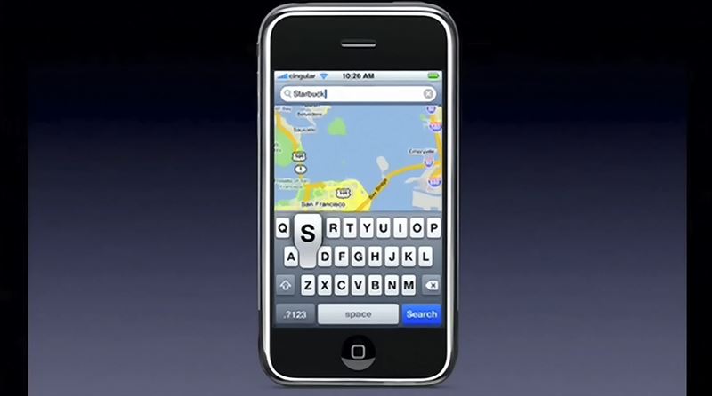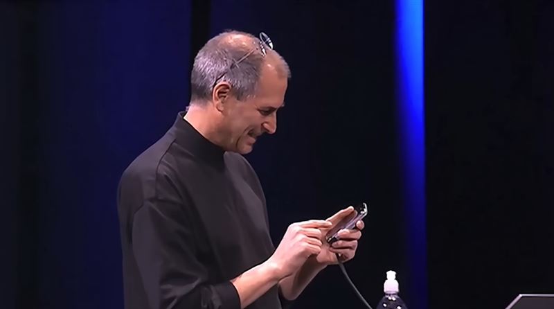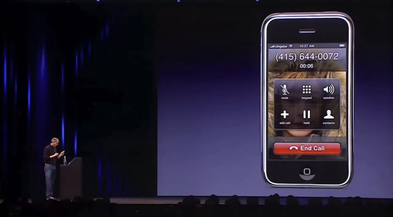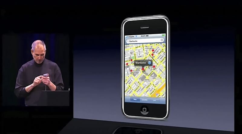 2007年1月9日,在舊金山莫斯康會議中心,賈伯斯當著台下4千位觀眾,手裡握著一支可能隨時當機的iPhone原型機。他從手機上的Google地圖找到最近的星巴克,點一下螢幕就撥過去。星巴克員工張漢娜接起電話時,賈伯斯說:「我想要四千杯拿鐵外帶,謝謝。」全場瞬間笑翻。賈伯斯馬上說:「開玩笑的,我打錯了!」這通惡作劇電話,成為iPhone歷史上第一通公開撥出的電話。