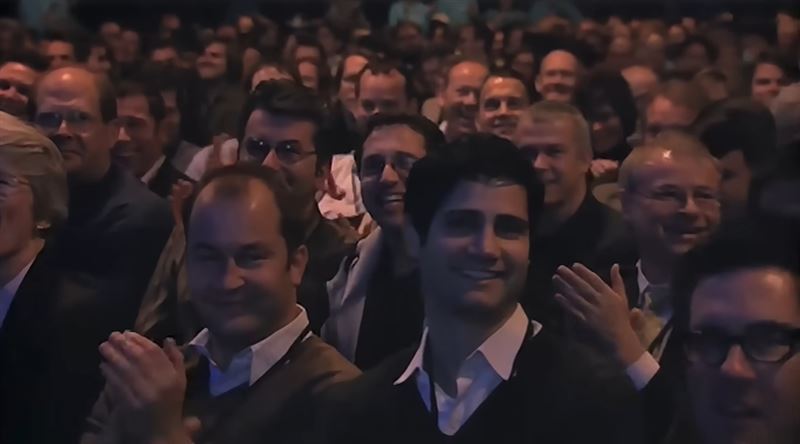 四千觀眾屏息等待 見證科技革命眼前誕生終於,iPhone 就要登場。台下四千名與會者興奮不已,其中包括iPhone 團隊全體成員,還有安迪.赫茲菲德、比爾.亞特金森、史帝夫.沃茲尼克等1984 年麥金塔團隊的老戰友。當時的賈伯斯因癌症手術及後續藥物治療的影響,看起來相當消瘦。