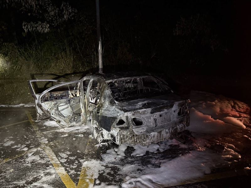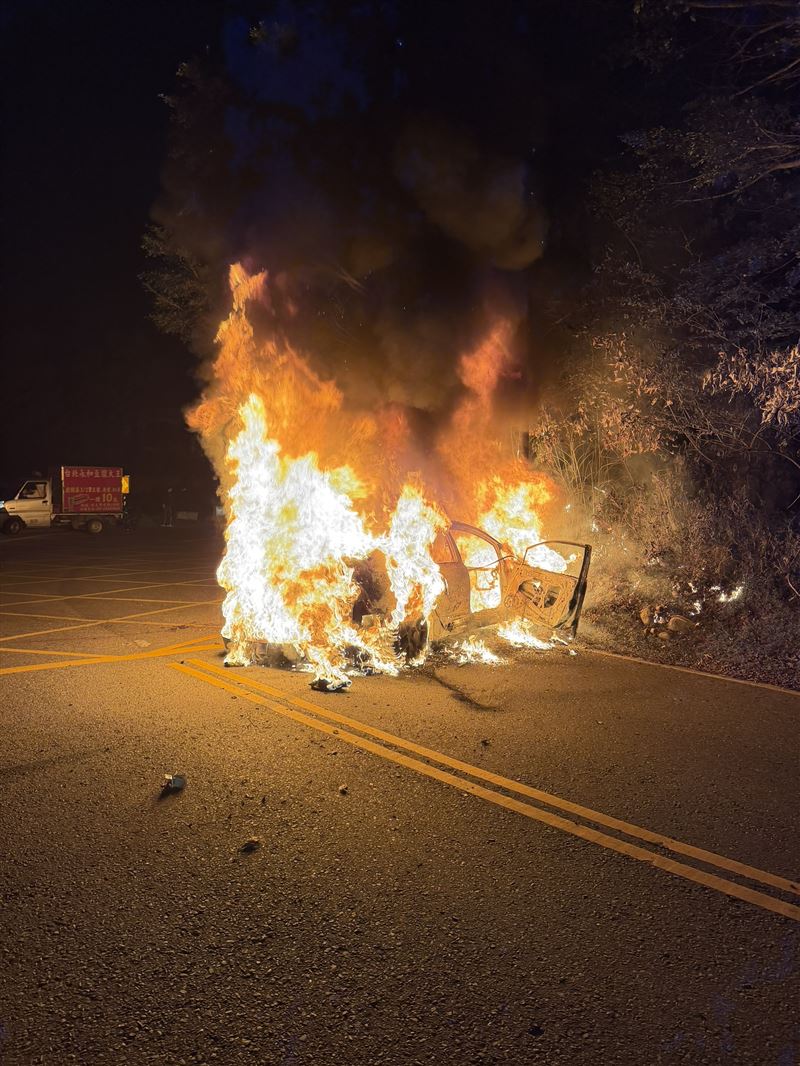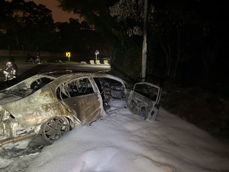 畫面中,消防人員到場時,失控自撞的轎車已經陷入火海,在暗夜中燒成一團火球,所幸撞擊後,跟在林男後方的同行友人立即開車門,解開林男安全帶,將已經沒有生命跡象的林男拉出到空地,等待救援。火勢在晚間11點21分將火勢撲滅,整輛車已被燒到只剩車架,據了解,該車疑似為近期年輕人喜愛的「神車」Civic 八代(K12)。