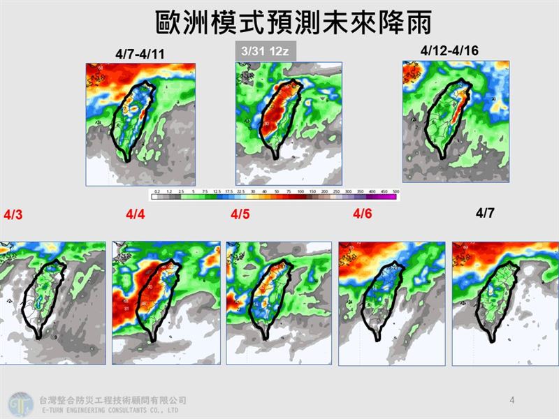 台灣新聞通訊社-雷雨挾強風!清明連假半個台灣「雨下到發紅」 降雨熱區曝