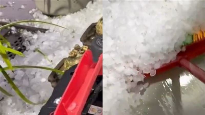 【冰雹堆到車門高 民眾被困兩小時】市民吳先生拍下現場畫面並表示,冰雹大約在當晚8點左右開始,持續約20分鐘,顆粒不小,砸在車輛上聲響驚人。部分車輛的玻璃與引擎蓋都被冰雹擊中。