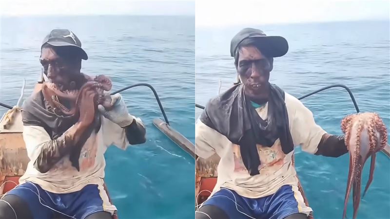 脫困後,漁夫還將章魚拿起展示,顯示這場「人魚大戰」最終未釀成悲劇。不過影片曝光後,仍讓不少網友直呼「太可怕」、「差點窒息」,也有人表示,從畫面中可以清楚感受到章魚的力量與求生本能。