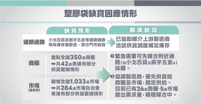 受國際戰爭局勢影響,石化原料供應受阻,廣泛用於購物包裝、食品的塑膠袋供應吃緊,經濟部產業發展署副署長鄒宇新今(6)日在「因應中東衝突民生安定專案會議例行記者會」表示,在塑膠袋部分,過去平均供應8000噸以外,中油這次提出5000噸方案,不管從額外增產乙烯跟聚乙烯到塑膠袋,會增加5000噸塑膠袋產量。