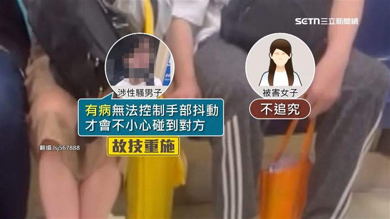 原來去年底男子就曾因為類似行為被警方攔下盤查,他卻大言不慚聲稱「自己有病」,無法控制手部抖動才會不小心觸碰到對方,當時被害女子心軟暫不追究,沒想到這回竟又「故技重施」。