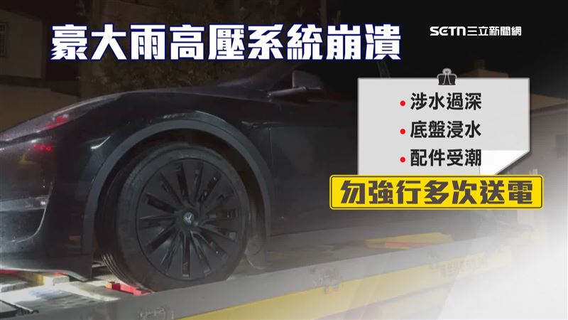 去年七月台南大淹水,台南市議員李宗翰開著電動車勘災連車牌都掉了,後來拋錨也是林老闆去拖回南投維修。他指出外界印象電動車有更高防水係數,但有時候豪大雨,涉水過深,底盤浸水配件受潮,千萬不要輕信網路謠言強行多次送電發動。