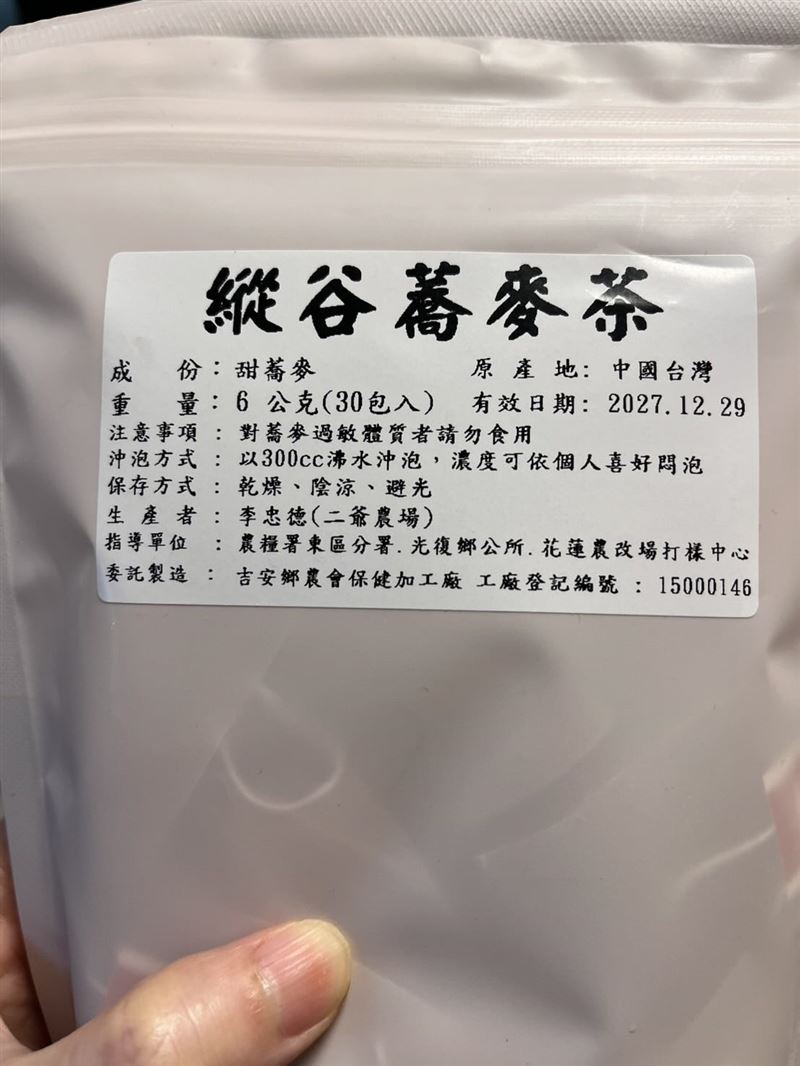 民進黨立委王義川近日爆料,一款由花蓮縣吉安鄉農會代工的茶包「縱谷蕎麥茶」,標籤上產地被標註為「中國台灣」,隨即引發矮化國格爭議。今(6)日,吉安鄉農會對此致歉,坦言行政審查不夠嚴謹,未及時發現標籤字樣。