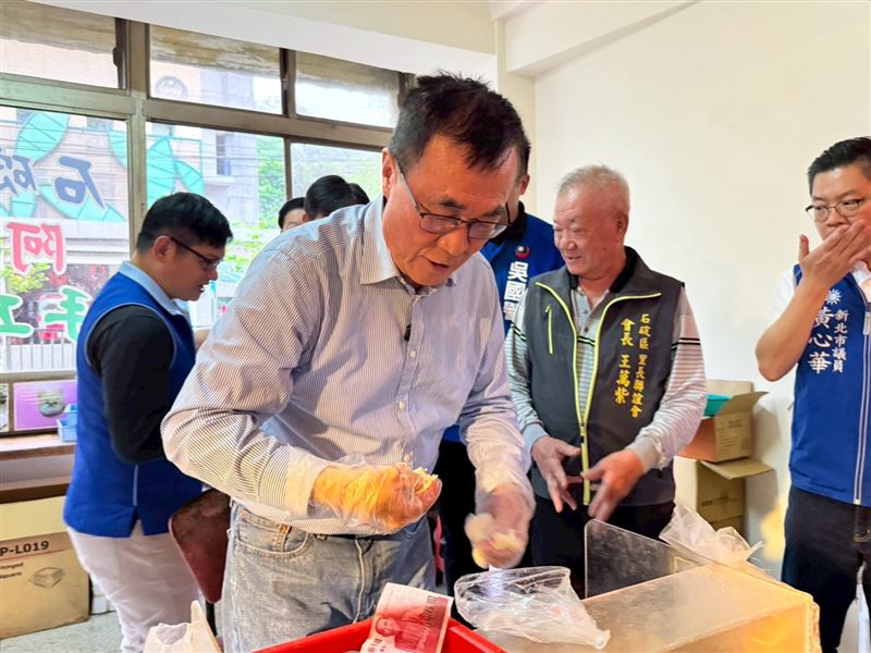 隨後,李四川轉往石碇老街與攤商、遊客熱情互動,更親自挽起袖子體驗「親手作麻糬」,展現十足的親和力,與鄉親打成一片,現場歡笑聲不斷。行程中也出現溫馨插曲,光明社區理事長特地送上特產「包種茶」,祝福李四川年底選戰順利「包中」。