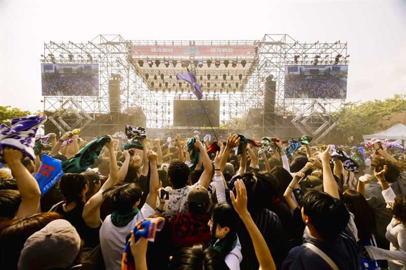 接近中午時分,大批樂迷不畏豔陽,早早湧入舞台前卡位,邁入第6年的台灣祭,樂團演出張力更勝以往,由實力派樂團傻子與白痴率先登場,帶領樂迷沉浸在迷幻搖滾氛圍中;隨後滅火器樂團以最具代表性的台式龐克點燃全場熱血,台下觀眾隨節奏吶喊、揮舞雙手,最後登場的「三金歌王」盧廣仲接連帶來多首經典歌曲,在海風與星空陪伴下,數萬名樂迷齊聲大合唱,熱情歌聲迴盪全場,也為今年台灣祭畫下感動又難忘的完美句點。