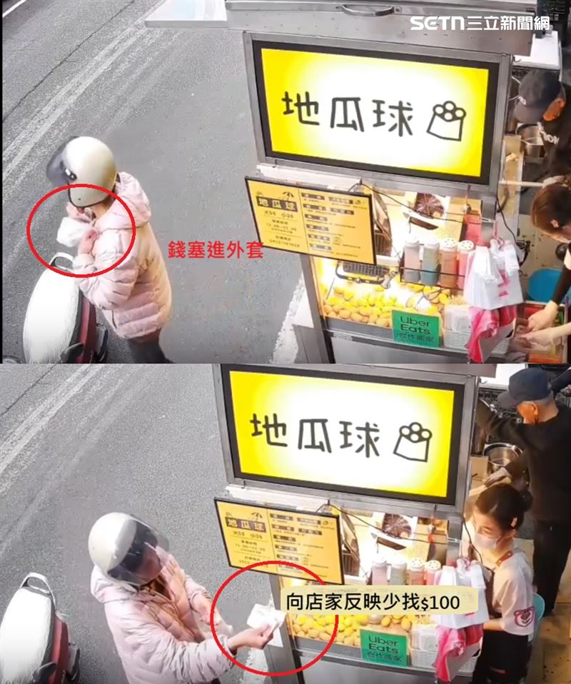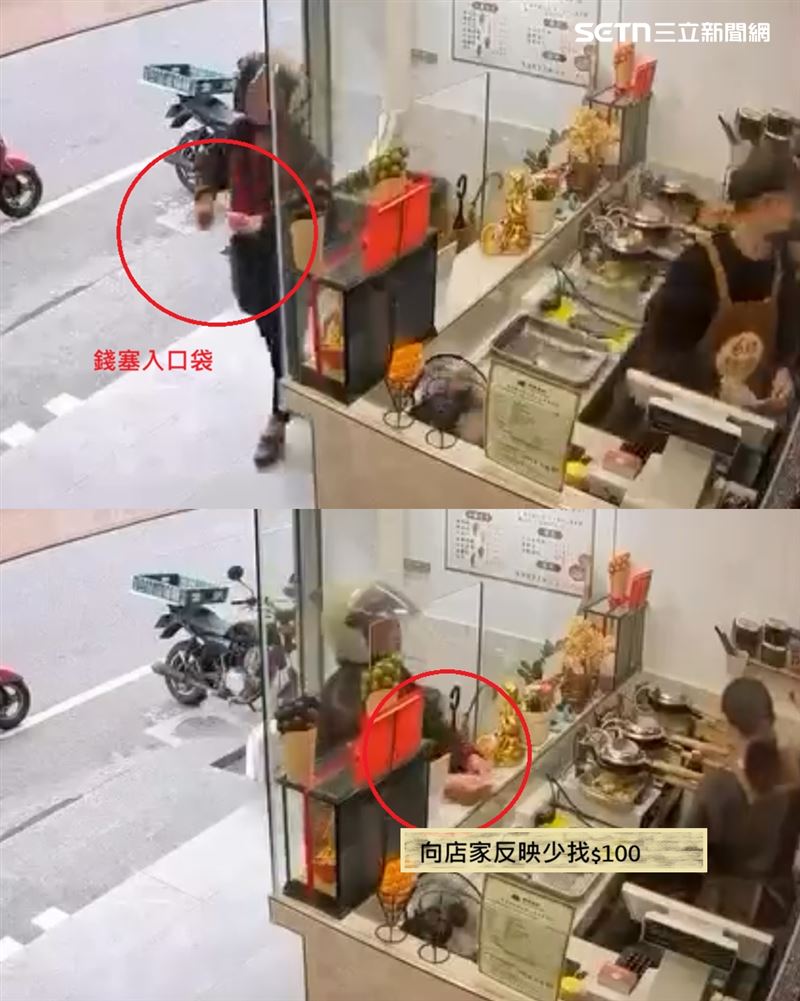 另一個店家則PO出,婦人又前往一家鬆餅店,以相同的手法騙錢,這次是將一百元塞到褲子口袋,再回頭跟店家反映少找錢。讓店家也將受害影片PO出,呼籲其他店家要小心!