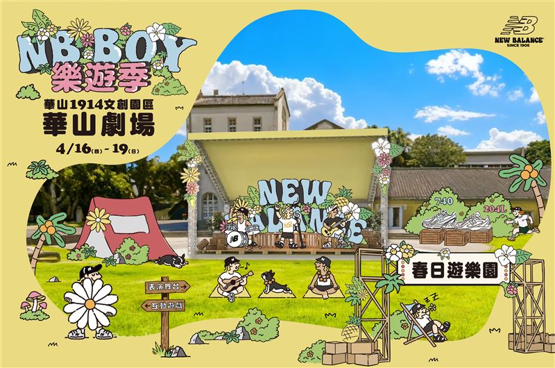 New Balance 4/16-4/19日於華山文創園區打造期間限定《NB 樂遊季》,獻上特別舞台《 NB BOY 樂遊季:春日大聲唱》,集結高爾宣OSN、Marz23、瘦子E. SO等多組歌手團體連番登場。