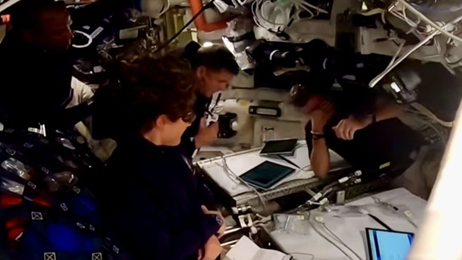 話一說完,懷斯曼淚流滿面,拭淚後將手搭在隊友肩上。其他船員維克多格洛弗(Victor Glover)、克里斯蒂娜科赫(Christina Koch)也紛紛落淚,科赫甚至摘下眼鏡拭淚,之後4人緊緊擁抱在一起。