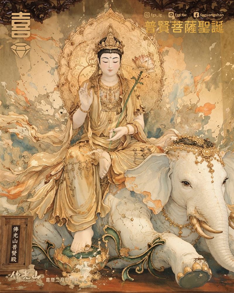 普賢菩薩是誰? 農曆2月21普賢菩薩聖誕的意義法鼓文理學院佛教學系主任鄧偉仁表示,在大乘佛教裡,普賢菩薩被尊稱為「行願之王」,代表的是修行的實踐力量。如果說佛教智慧的代表是文殊菩薩,那麼普賢菩薩就是把智慧落實在人生中的實踐者。一、普賢菩薩是誰?祂與釋迦牟尼佛、文殊菩薩合稱「華嚴三聖」。 在佛教經典中:文殊菩薩代表智慧、普賢菩薩代表實踐、釋迦牟尼佛代表覺悟 因此佛教常說一句話: 「文殊之智,普賢之行。」 意思就是: 智慧要落實在生活中,才是真正的修行。普賢菩薩最經典的精神,就是《華嚴經》中的普賢十大願王。