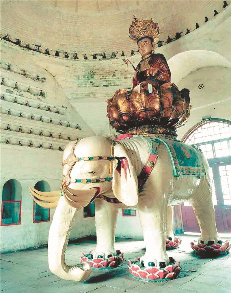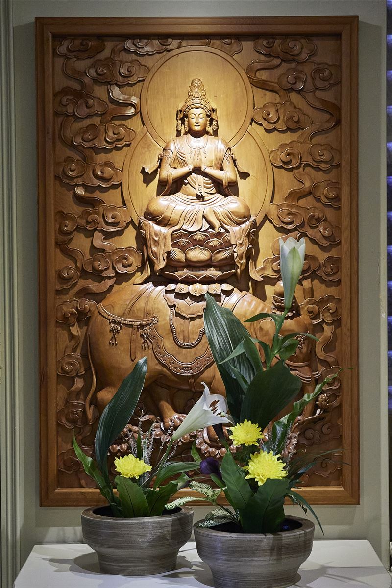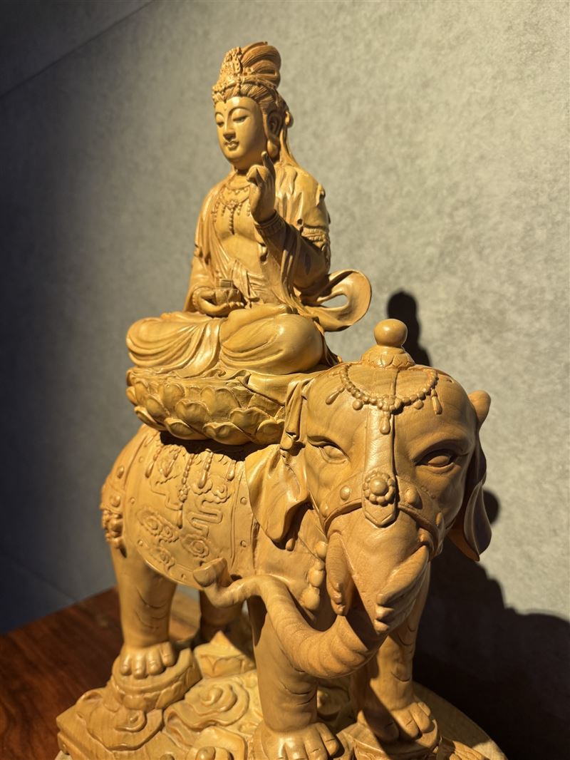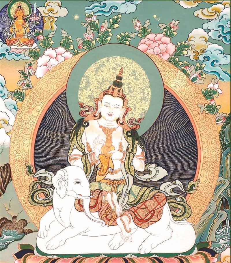 3.修行的守護者:普賢菩薩常被視為修行者的守護菩薩。傳統形象中普賢菩薩騎乘六牙白象。六牙白象象徵:六波羅蜜布施、持戒、忍辱、精進、禪定、智慧,也象徵修行者要跨越煩惱與障礙。