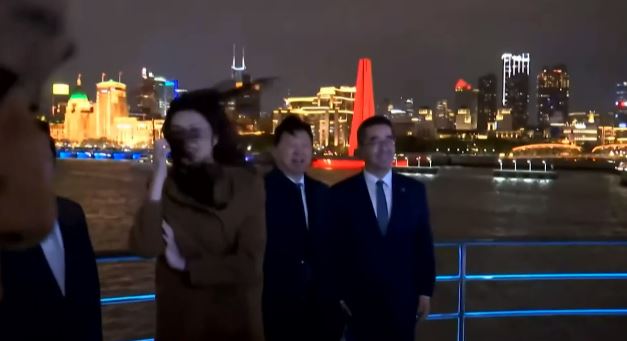 國民黨主席鄭麗文中國參訪行程第二天,整天下來行程滿檔。結束南京行,晚間一行人前往上海,先是上海市委書記陳吉寧進行會談,隨後在國台辦主任宋濤的陪同下,搭乘「上海之星」遊船,夜遊黃浦江,欣賞上海著名的夜景。不過,現場風勢頗大,鄭麗文在拍照時頭髮頻頻被吹亂,只好多次用手壓住頭髮,過程也全被媒體捕捉。