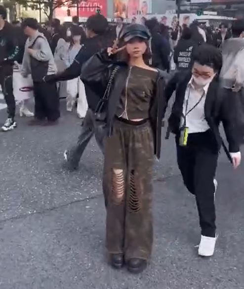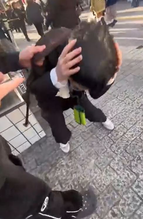 近日外國社群流傳一段影片,在東京澀谷街頭,一位遊客在拍照,後面突然來了一位身穿深色套裝、戴著口罩的短髮女子,她用力撞上遊客後匆匆跑走,突如其來的撞擊讓遊客重心不穩。