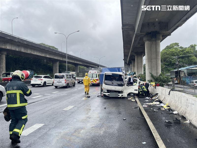 救護人員檢傷後發現,許姓小貨車司機已無呼吸心跳,隨即實施CPR並送往內湖三軍總醫院搶救,昨天下午4時許宣告不治;另外,3名男駕駛及1名女駕駛則送往台北市立聯合醫院忠孝院區治療,至於詳細事故經過及肇事原因,仍待國道公路警察局調查釐清。