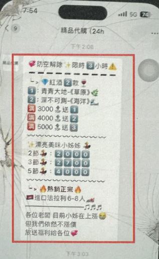 另外販毒集團將愷他命偽裝成應召小姐,並以「漂亮美味小姊姊、2節2000、3節2700、5節4000」為噱頭,推播廣告末尾還感性喊話:「各位老闆,目前小姊(價)位在上漲,但我們依然不漲價」,利用應召市場價格波動的假象,營造毒品「佛心促銷」錯覺,來吸引買家。