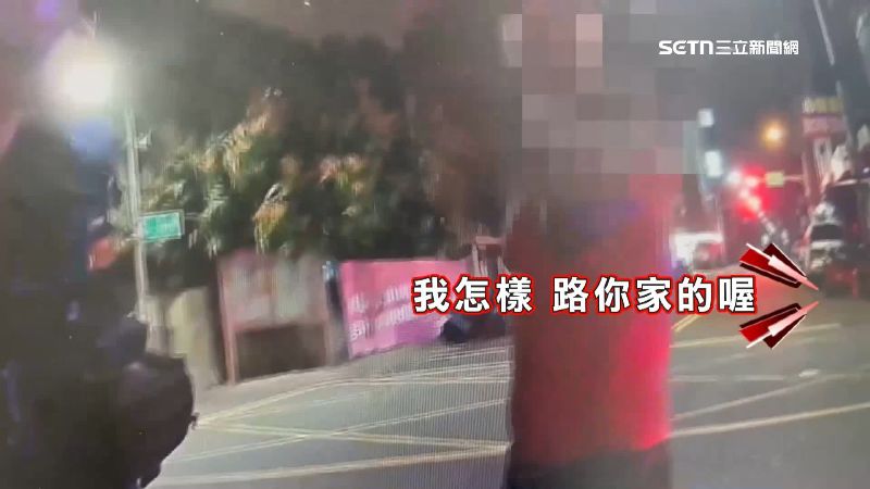 惡人先告狀,半甲男不斷怒吼,對無辜騎士及員警無差別攻擊,越講越激動,用身體碰撞挑釁。