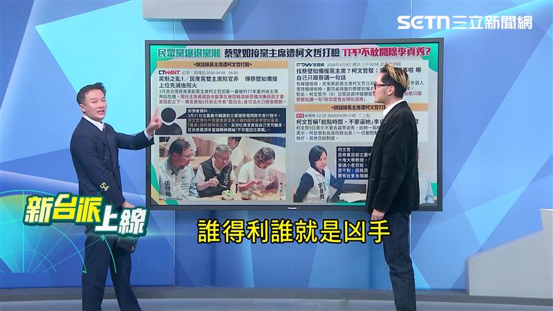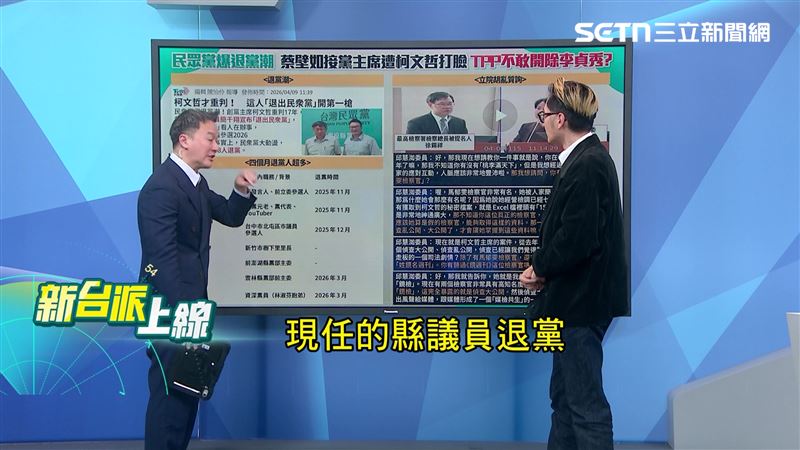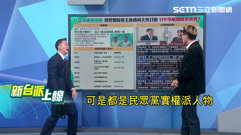 主持人李正皓表示,今天看到民眾黨南投現任的縣議員退黨,再回頭看李有宜、朱蕙蓉、陳諭韋、蔡志堅、許智富、林淑芬退黨,他直言,這些都是民眾黨實權派人物。