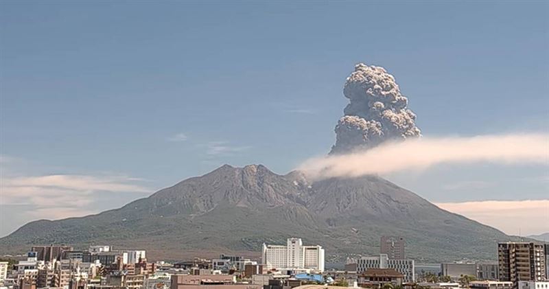 日本鹿兒島市的櫻島火山於當地時間11日中午發生今年首次爆炸性噴發,引發各界關注。根據日本氣象廳觀測,當地時間中午12時04分左右,櫻島南岳山頂火口出現劇烈噴發,噴煙直衝高空達3400公尺,並持續向東南方向擴散。
