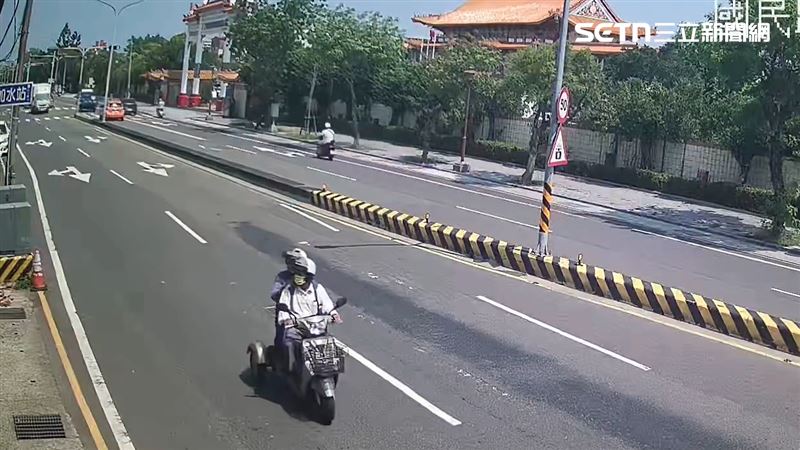 台灣新聞通訊社-畫面曝!殯儀館前…夫妻詭停路中「看告別式花柱6秒」釀追撞