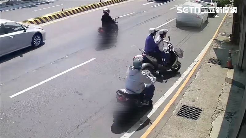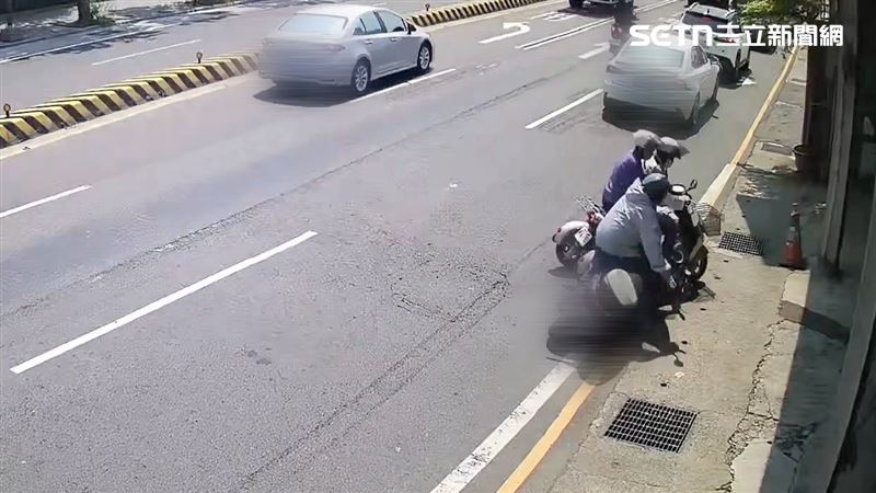 好幾輛車從旁呼嘯而過發出巨大聲響,才將夫妻倆拉回現實,這時他們也決訂要下單了,突然鬼切向右偏往店家去,後方騎士閃避不及,撞個正著,騎士重摔發出淒厲慘叫聲,三輪機車反而穩如泰山,夫妻皆未落地。