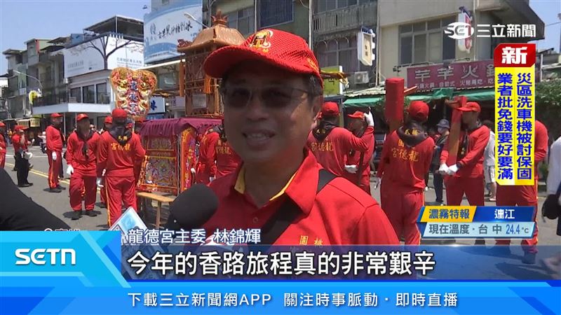 龍德宮主委林錦輝:「因為這麼遠的跨距是一條非常,難得南北縱貫的香路,也是第一香路,那過去我們一直,覺得說這條香路對我們來講,是困難重重,不過在去年的時候,四媽祖祂就來聖示,祂說,祂真的要走到高雄,頂著烈日,我們者這樣子一路徒步,今年的香路旅程真的非常艱辛。」