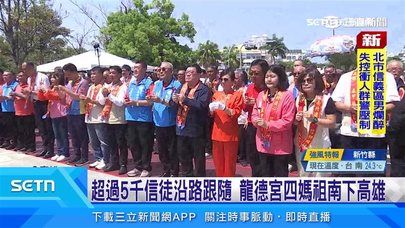 高雄鳳山體育場聚集大量信眾來參與盛會,這次南下高雄大約有5千名信徒跟隨,聲勢浩大,包含「金龍陣」跟「花鼓陣」等,都是龍德宮自組,「四媽祖鑾轎」也是由媽祖遴選出來的女性扶轎!