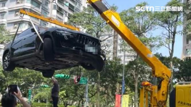 百萬海神就這樣被拖吊車掛起,懸在半空中,一旁的民眾路過都紛紛拿起手機記錄下這一刻,但到底發生什麼事?時間倒回半小時前,原來海神駕駛開著車,突然橫跨兩個車道後擦撞到內線的小貨車。小貨車才剛駛過路口,根本來不及反應,就被撞上。