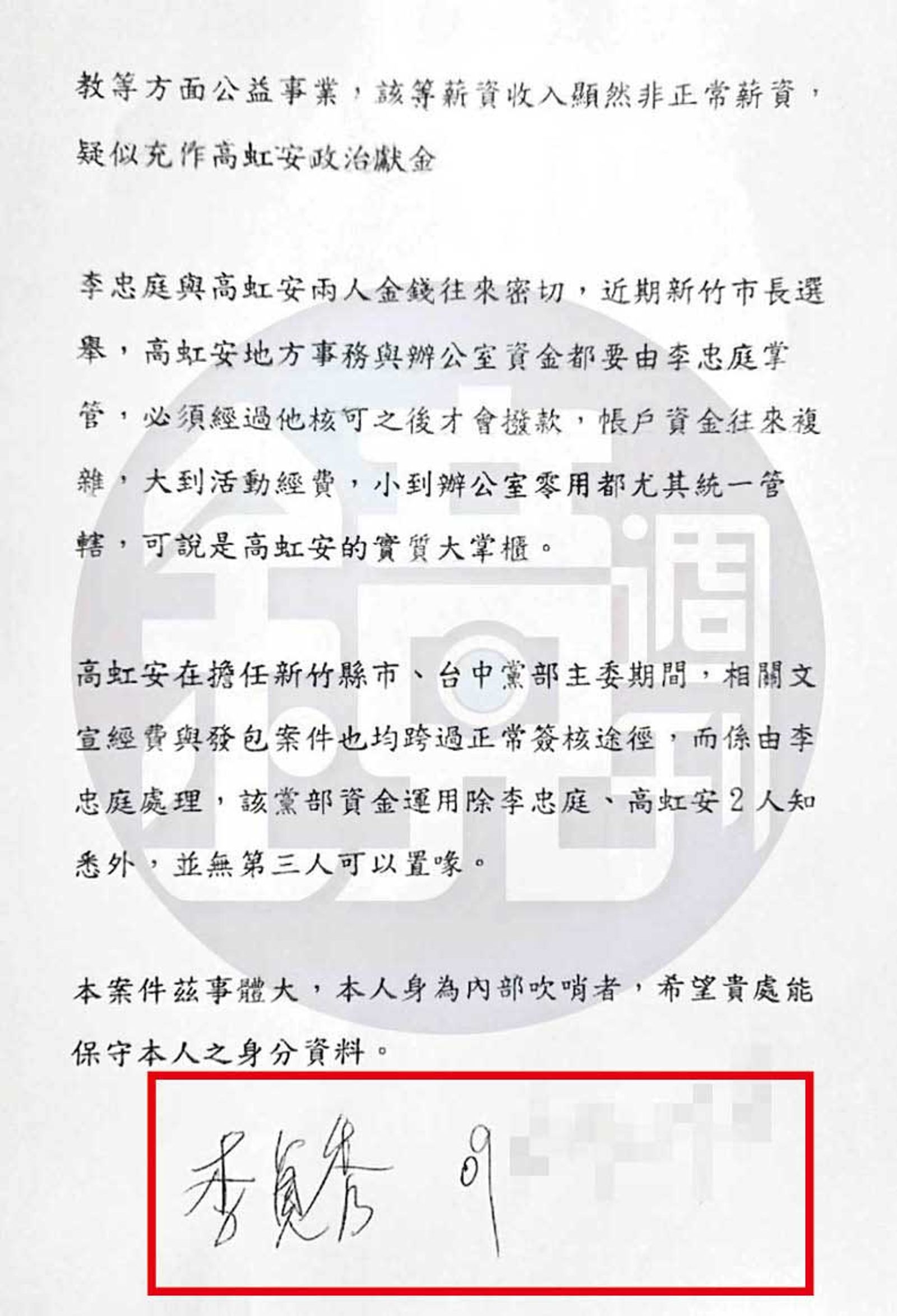 台灣新聞通訊社-逼退李貞秀內幕/手寫「李貞秀」檢舉函曝 控高虹安男友1事最後不起訴