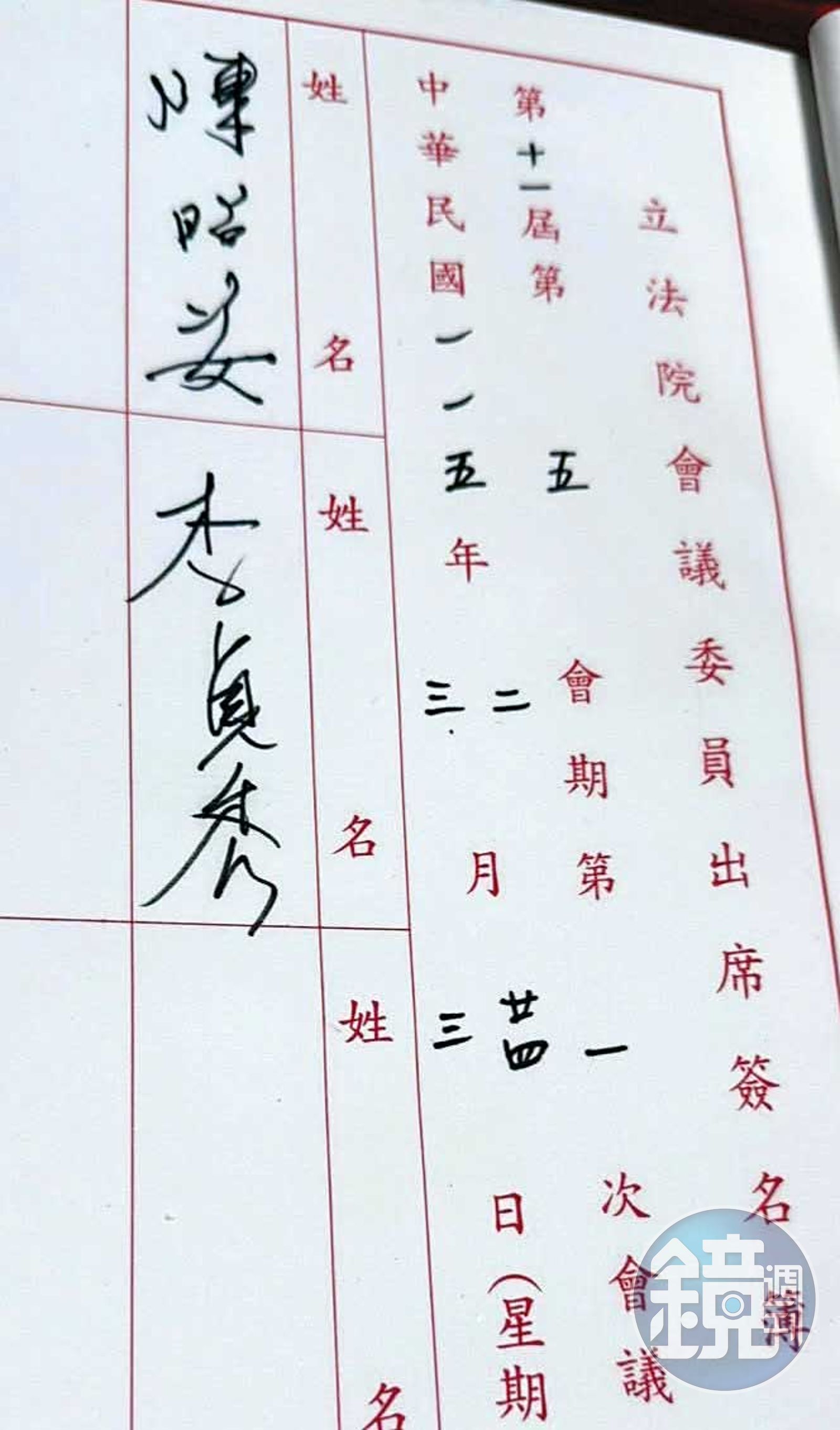 本刊掌握,當年舉發高虹安案的檢舉函中,有一封是在2022年10月中下旬送進調查局,函末除手寫「李貞秀」3個字,還留下一組手機號碼,本刊就該函「李貞秀」的簽名,與李貞秀在立法院簽到的簽名比對,從運筆到特殊畫寫手法均極為相似。