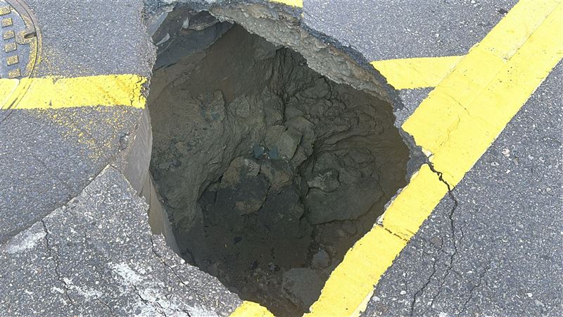 水利局表示,接獲通報後迅速派員趕赴現場勘查,初步研判疑因地下污水管線破損,進而造成路基流失,引發路面下陷。現場已即時完成交通維持及安全防護措施,並先行進行灌漿作業完成緊急修復,後續將全面檢視污水管線受損情形,儘速辦理修復工程,以確保道路安全及用路人通行無虞。