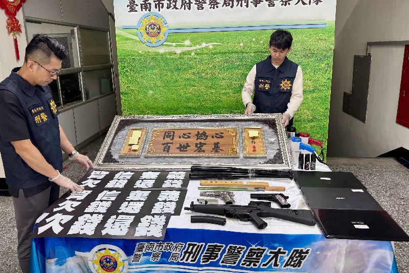 李政憲表示,同時起獲鋁棒、西瓜刀、辣椒水、空氣槍、仿MP5電動氣槍、筆記型電腦、「欠錢還錢」磁性軟板、大聲公等證物,全案調查後,依違反組織犯罪防制條例、刑法強制罪、恐嚇取財罪及公司法等罪嫌,移送台南地檢署偵辦。