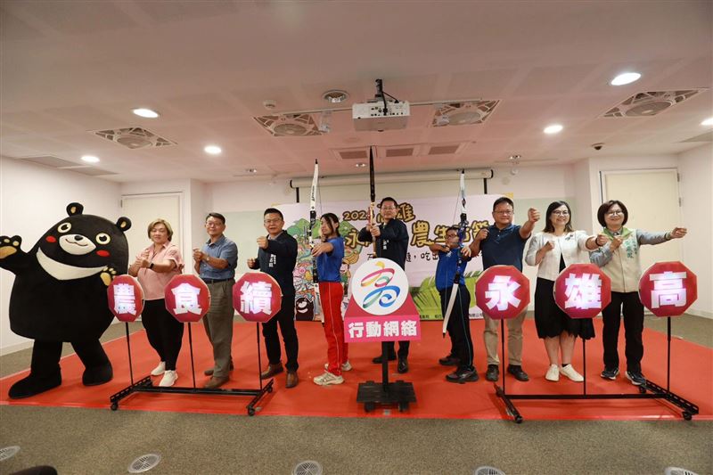 開幕由永芳國小學生帶來熱鬧精彩舞獅揭開序幕。緊接著由射箭隊小朋友登場,帶領市府秘書長郭添貴一同拉弓射箭,射向「高雄永續食農」行動網絡的靶心,象徵市府跨局處齊心推動《食農教育法》的六大方針,氣勢滿滿!