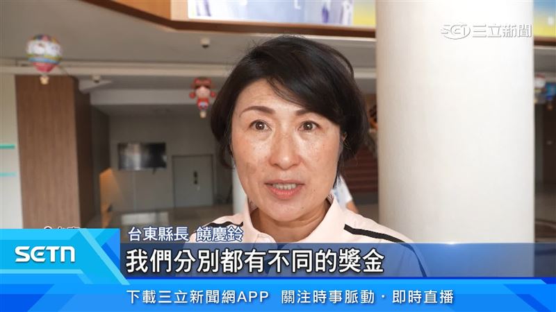台東縣長饒慶鈴:「它是在全中運或全國運動會,得到第一名,第二名,第三名,不論是個人跟團體,我們分別都有不同的獎金,而且是從每個月領取維持一年,有的甚至維持到兩年,運動選手申請這個比賽獎金,一年只能兩次,我們現在開放到三次 。」