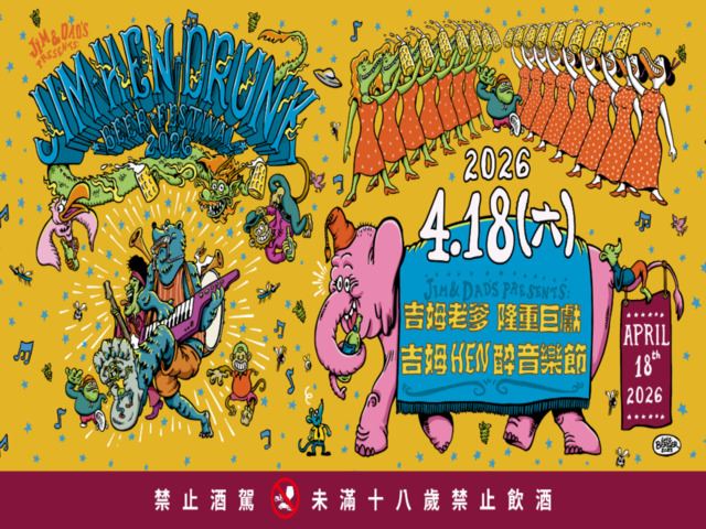 「吉姆hen醉」音樂節將於4/18盛大登場,免費入場,主辦單位更是備妥宜蘭轉運站免費接駁車,邀請樂迷一同玩宜蘭暢遊。