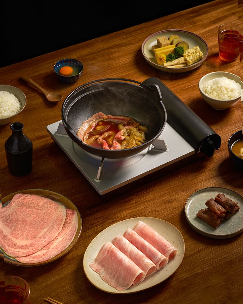 兩款宅配組合皆附贈鑄鐵壽喜鍋,不出門也能享受滿滿儀式感!Extension 1 by 橘色壽喜燒宅配組合將於4月16日起至5月8日開放限時限量預購,「日本A5和牛盛合」售價為3,800元;「特選豬肉盛合」售價為2,800元。