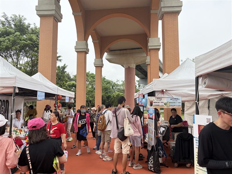 新北捷運工程局今(18)日於臺北大學飛鳶廣場舉辦「微笑三鶯 樂享未來」飛鳶野餐音樂會,結合音樂、市集與草地野餐,並設置吸睛的主題打卡看板,及深受親子喜愛的大型氣偶YOYOMAN與阿奇同場亮相,吸引大小朋友前來拍照,思古迴廊變大型派對,現場熱鬧滾滾,嗨翻北大校園!