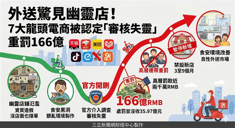 台灣新聞通訊社-外送驚見幽靈店爆食安!7大龍頭電商被認定「審核失靈」 重罰166億