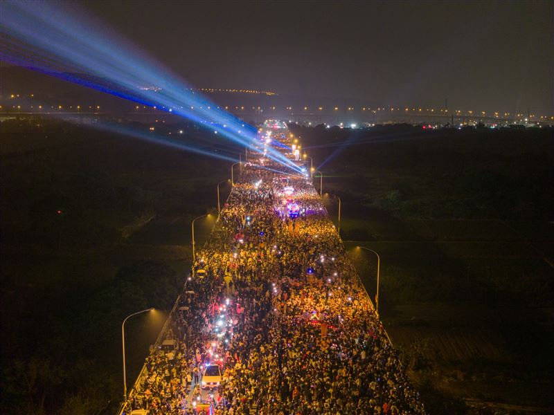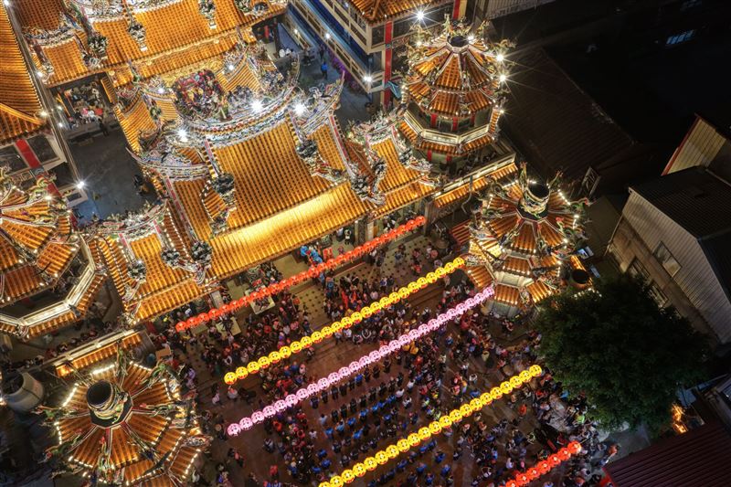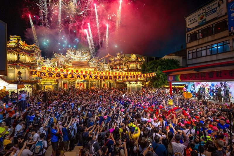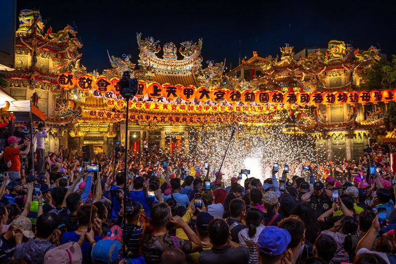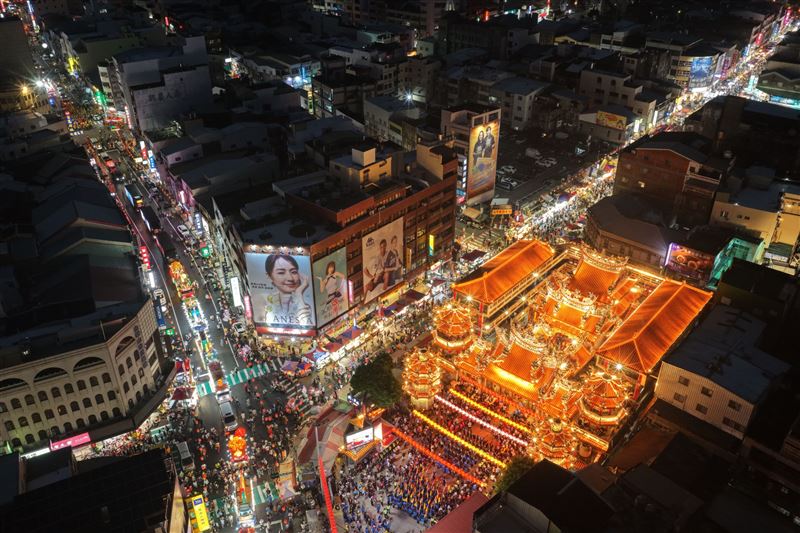 空拍大甲媽起駕好震撼 60萬人湧入鎮瀾宮《古哥空拍法人》攝影團隊從高空記錄這歷史畫面。空拍鏡頭下,鎮瀾宮金光閃耀,四周道路全被人潮塞滿,綿延到街角盡頭,宛如一條信仰長河。煙火在夜空中綻放,與地面燈火相互輝映,形成最美台灣夜景。壯麗畫面令人震撼感動,也讓世界看見台灣信仰力量的氣勢磅礴。