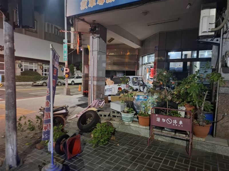昨日深夜11時15分許,33歲林女駕駛BMW轎車沿豐富路往北往永春東路行駛,通過文心南三路口時與另輛由58歲李男駕駛的轎車發生碰撞,撞擊力道猛烈,李男車輛瞬間失控,再度衝撞進路旁的修配廠,更撞倒停放在騎樓的4部機車。