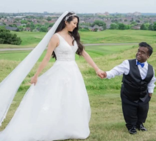 真愛面前,身高只是個數字!患有侏儒症的多倫多工程師蒂莫西(Timothy Muttoo),雖然身高只有120公分,卻憑藉自信娶回163公分的正妹老婆安妮塔(Anita Wing Lee)。這對身高差高達43公分的夫妻,婚照在網路瘋傳後瞬間成了全球紅人。蒂莫西笑稱想追到心儀對象不一定要發動猛烈攻勢,他以自身經驗建議缺乏安全感的男性,友誼才是通往真愛的最佳捷徑。