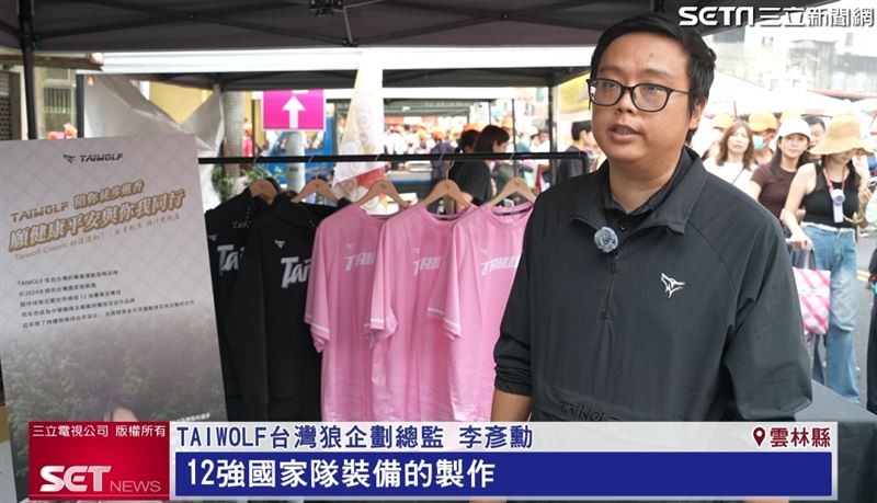 台灣狼致力打造台灣最專業的運動服飾和裝備,結合最好的布料、材質與技術,品牌成立10年磨出Team Taiwan帽T,成功打出名號!TAIWOLF台灣狼企劃總監李彥勳表示,台灣狼前年有參與12強國家隊裝備的製作,一直以來都致力於生產好的布料跟材質,以球員的需求去做商品生產,這次在白沙屯進香現場特別帶來熱賣商品,也是運動練習時可以穿的衣服,材質非常適合台灣的氣候。