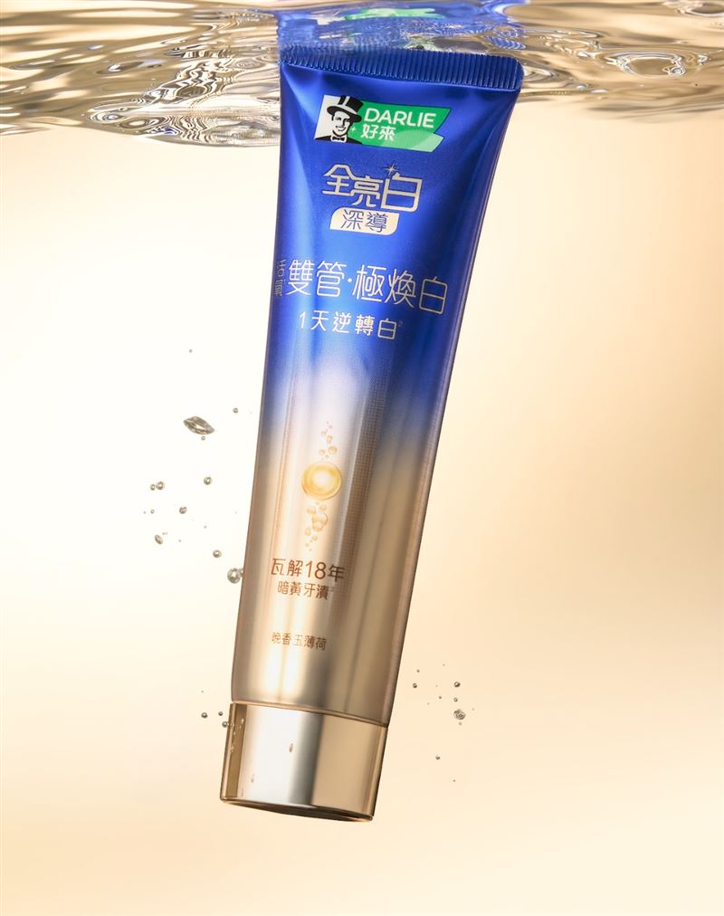 台灣亮白牙膏品牌DARLIE好來全亮白系列,推出全新「好來全亮白深導極煥白雙管牙膏」,堪稱美白牙膏界的極效安瓶。
