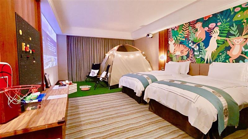 林欣怡表示,淡水福容大飯店超過一半客房可同時飽覽海景、淡江大橋地標景觀,讓旅客在房內即可感受山海與城市地標交織的獨特視野,此外,在客房部分持續優化親子度假體驗,如長期深受喜愛的「露營主題房」全面升級換上全新樣貌,與三大品牌跨界合作,包括Epson、OutdoorBase以及利百代,導入沉浸式設施,打造兼具趣味與舒適的親子度假空間。