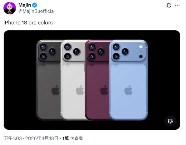 導覽目錄: 外媒披露iPhone 18 Pro新配色 「櫻桃深紅」首度曝光 四色砍一色?「淺藍」驚傳遭剔除