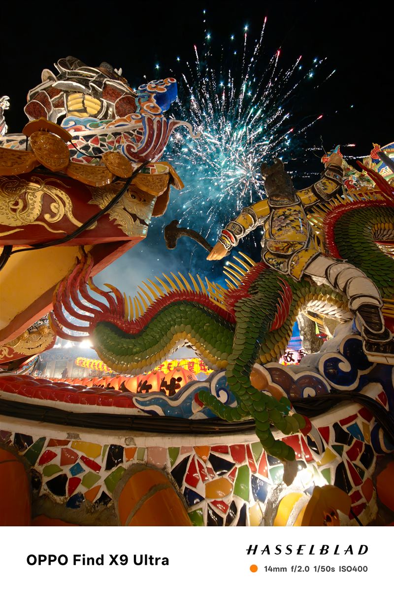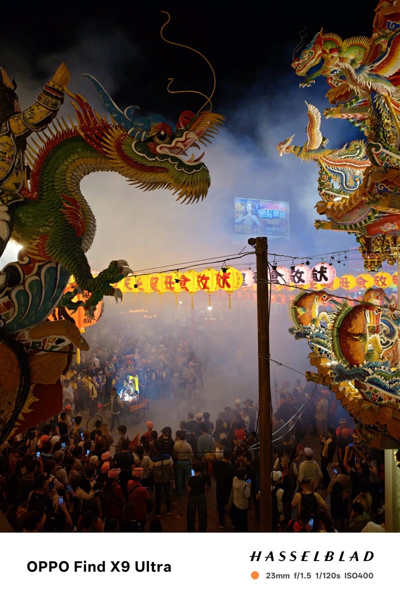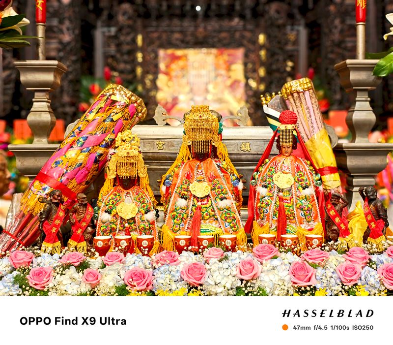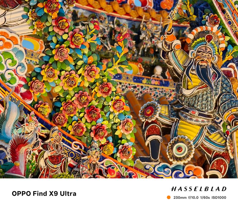 作為本次鎮瀾宮指定拍照手機,OPPO以未上市旗艦機款Find X9 Ultra紀錄。在宮廟建築特有的繁複雕刻、絢麗色彩,以及燈火斑斕的場景中,Find X9 Ultra 憑藉全新的旗艦長焦鏡頭與演算法,在高倍率焦段下,也能保有高品質的純淨畫質與清晰層次,並透過哈蘇大師鏡頭標誌的人文影調,如實呈現色彩的質感與張力,將百年傳統信仰轉化為永恆的精彩瞬間。