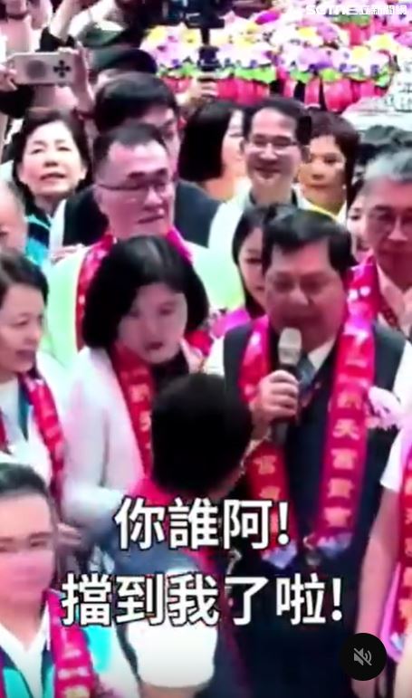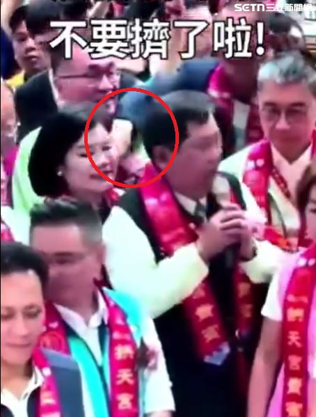 網友指出,立委張嘉郡隨後也加入,兩人並肩試圖在狹窄的空間中佔據更靠近中央的位置。畫面中一名站在後方的男子疑似看不下去,連續「戳了兩次」張麗善的肩膀,動作帶有明顯的警示意味,似乎在提醒縣長別再往裡面擠。