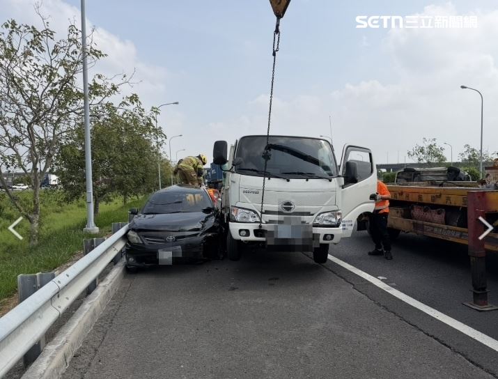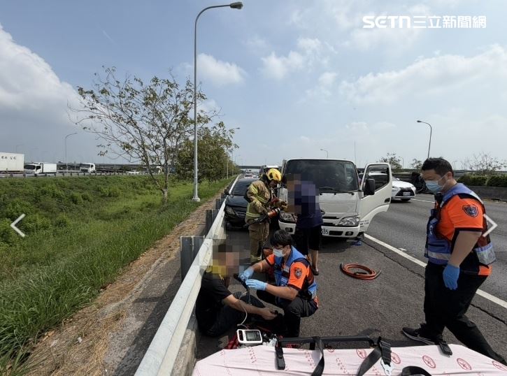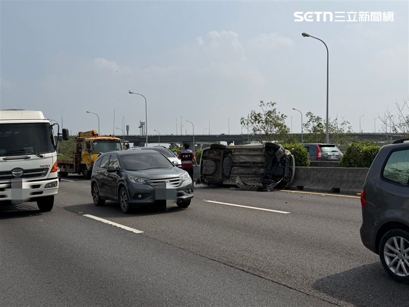 一輛自小客車側翻在分隔島旁,國道1號南下299.9公里處,因為四車連環撞一片混亂,警消獲報後立即趕到現場,上午9時55分,最後一名受困民眾順利脫困,一共6名傷患皆無生命危險,分別送往永康奇美、麻豆新樓醫院治療;其中一名5歲男童腹痛伴隨瘀青,另外一名40歲男性傷勢較爲嚴重,因為左手大範圍撕裂傷,於現場使用止血帶,詳細事發原因,仍有待進一步釐清。