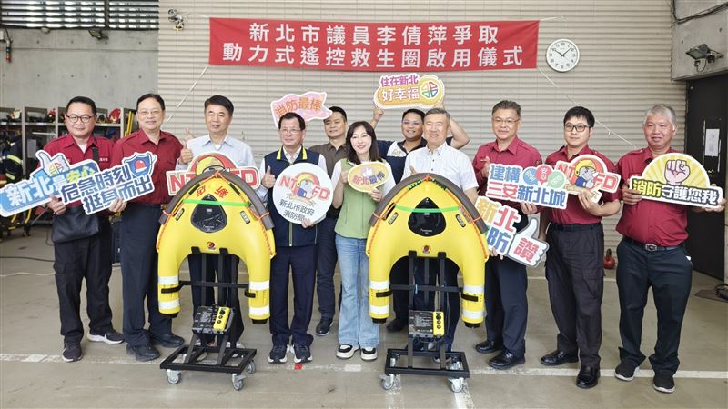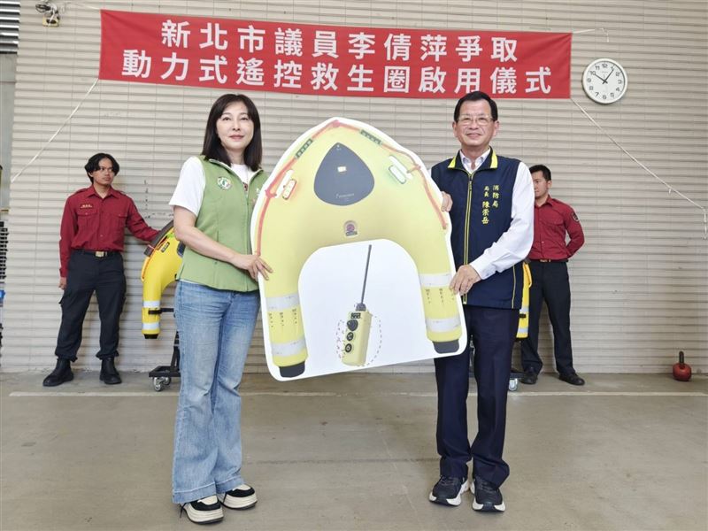 新北市議員李倩萍為強化水域救援能量、提升第一線執勤安全,特別爭取救災裝備經費,由消防局採購動力式遙控救生圈2組,總經費約新臺幣76餘萬元,並統籌配發予新店及八里分隊使用,守護市民生命安全,新北市政府消防局今(20日)上午舉行動力式遙控救生圈啟用儀式。
